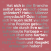 "Hat sich in der Branche selbst also wirklich etwas geändert? Haben Männer umgedacht? Oder haben sich Frauen nicht viel eher in eine Position gebracht, in der sie durch ihre selbst aufgebaute Fanbase - sei es nun über eine Karriere als Influencerin oder nicht - Raum und Respekt erzwungen haben?"